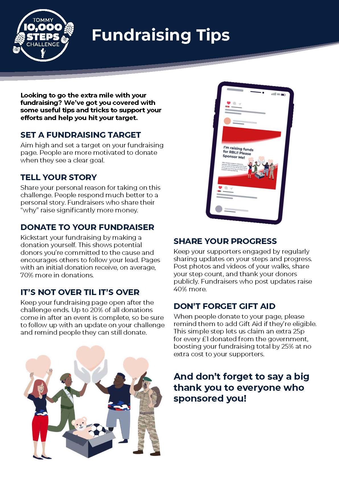 This page has everything you need to hold a successful 10,000 Steps Challenge! Click on the images to read or download essential advice, plus the tools you need to raise vital funds for vulnerable veterans.